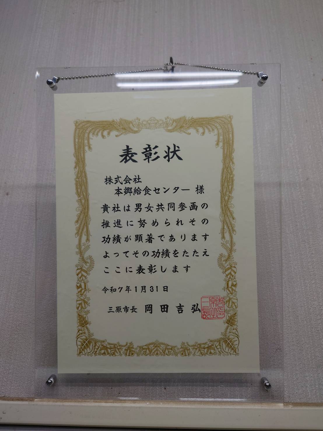 この度三原市の男女共同参画推進企業として表彰を頂きました! これからも誰もが働きやすい職場を目指していきます。